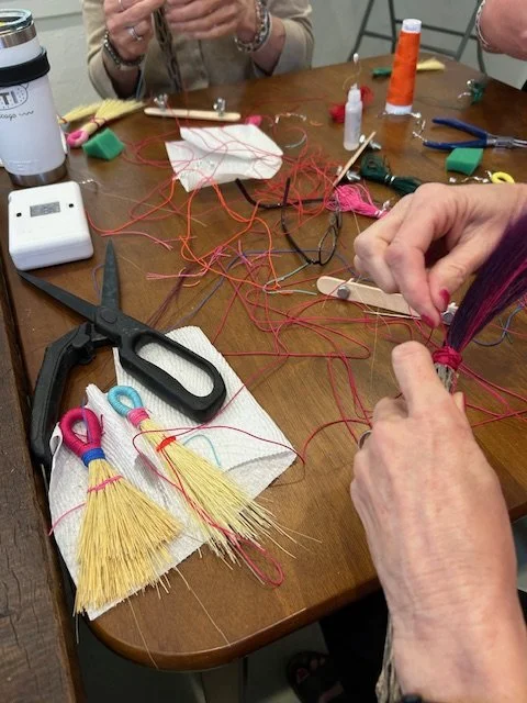 In this wonderful broom and brush making workshop, students will learn two different broom structures. Local artist and broom maker Julie DIckenson will guide you through the different techniques needed to make a Turkey Wing Whisk Broom and a smaller wrapped & stitched brush.