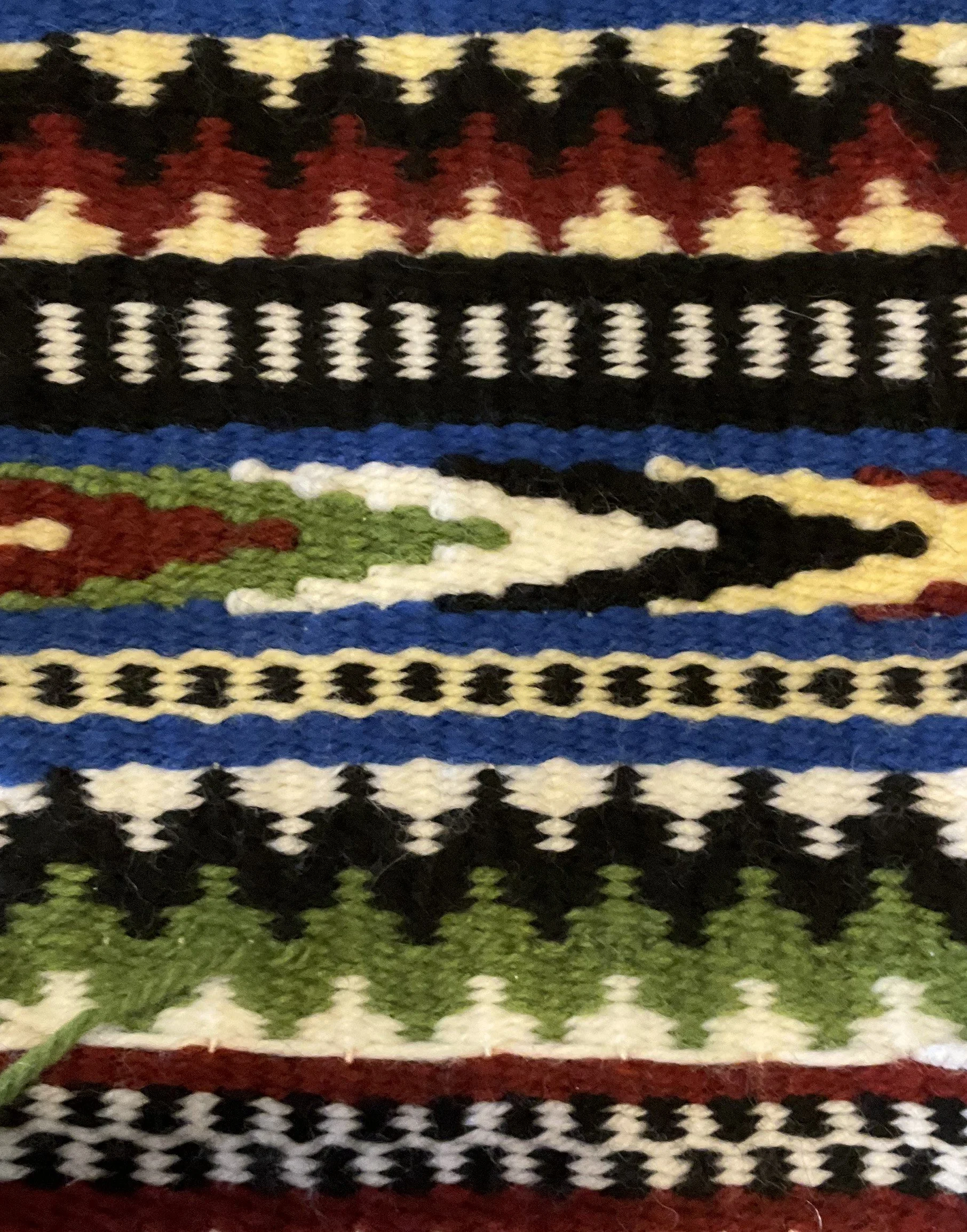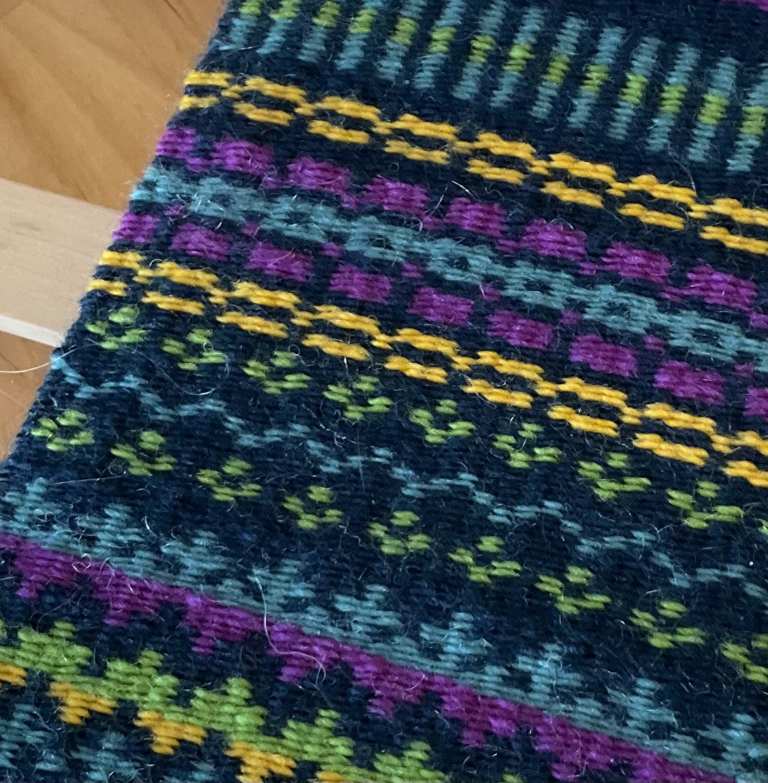 The weft-faced technique requires three picks for every pattern row, but don’t let that scare you! Although krokbragd is traditionally worked using medium-weight Scandinavian wool yarn, the pattern develops more quickly with the instructor’s preferred choice.