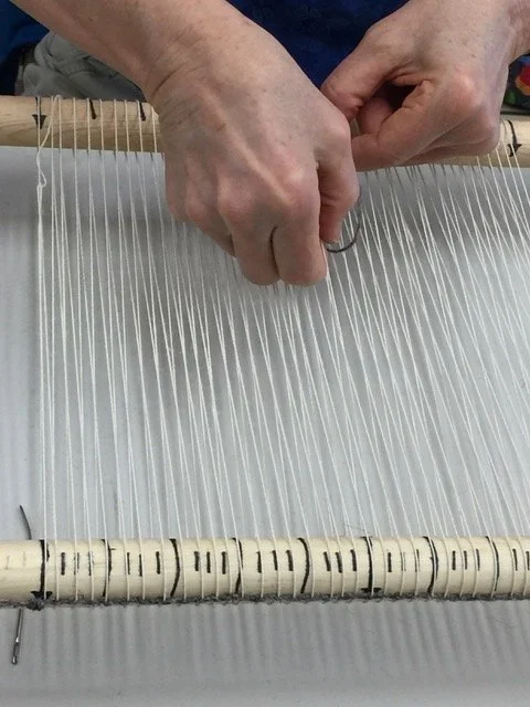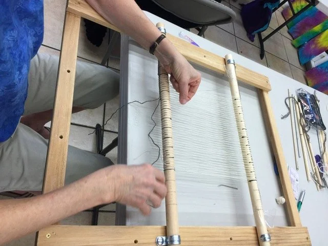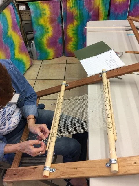 Warps can also be attached to other outside looms, but not during this class. If you have an outside loom, students will be prepared to take their warp home and attach to their looms themselves.