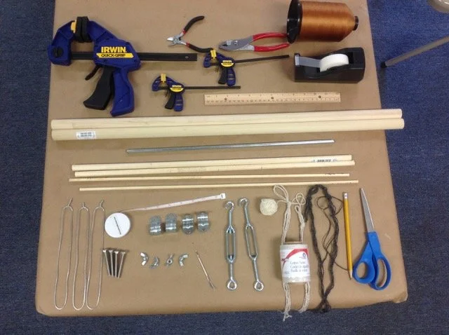 All of the above require purchasing if you would like to keep after the course. These items will be made available for purchase directly from Lynda Teller-Pete after the class: (Office supplies, turnbuckles, cable ties, markers, etc.) and labor of preparation (cutting and sanding dowels, cutting the metal rod, warping kit of two dowels and 4 sets of hardware, making the looms and attachments) and re-spinning the warp and selvage cords. Fabric shavers will be available for use during class.