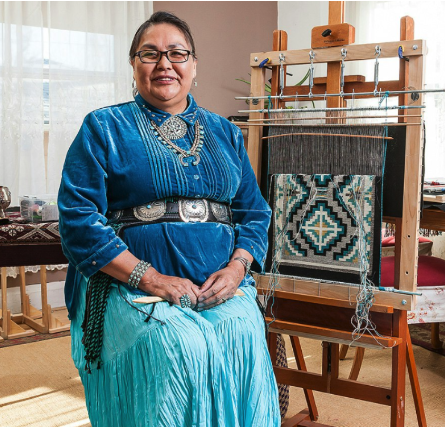 From the age of six, when Lynda was officially introduced to weaving, instilled the belief that beauty and harmony should be woven into every rug. Lynda is an artist, teacher, educator, writer, activist, collaborator and a cultural bearer and brings these skills to every endeavor. She works hard to bring an understanding and appreciation from an underrepresented and underserved indigenous textile population. Today, Lynda Teller Pete continues to carry this weaving tradition.