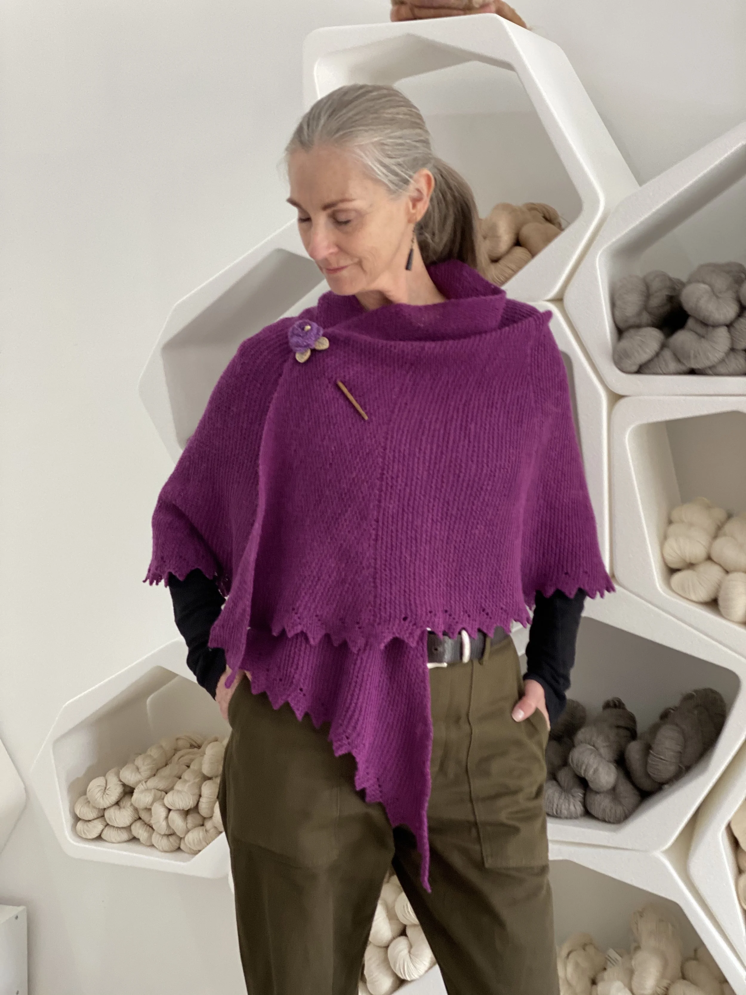 Fine-gauge yarn to complete a full-size shawl will be available for purchase in a wide variety of colors.