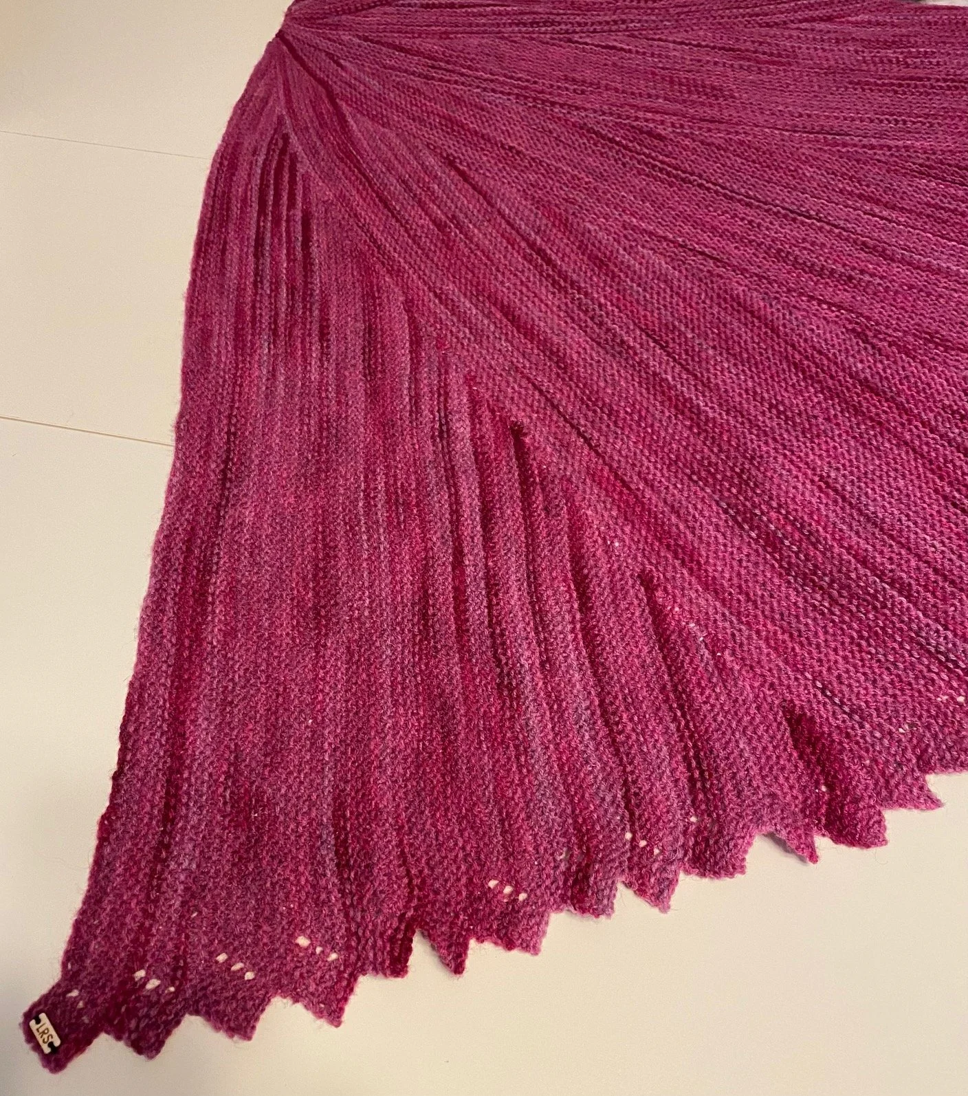 Join Laura Ninnemann in creating this exquisitely beautiful, yet simple, fine-gauge hand knit shawl. The design includes seven gracefully curving short-row wedges ending in a total of eighty-four delicate points along the bottom edge.