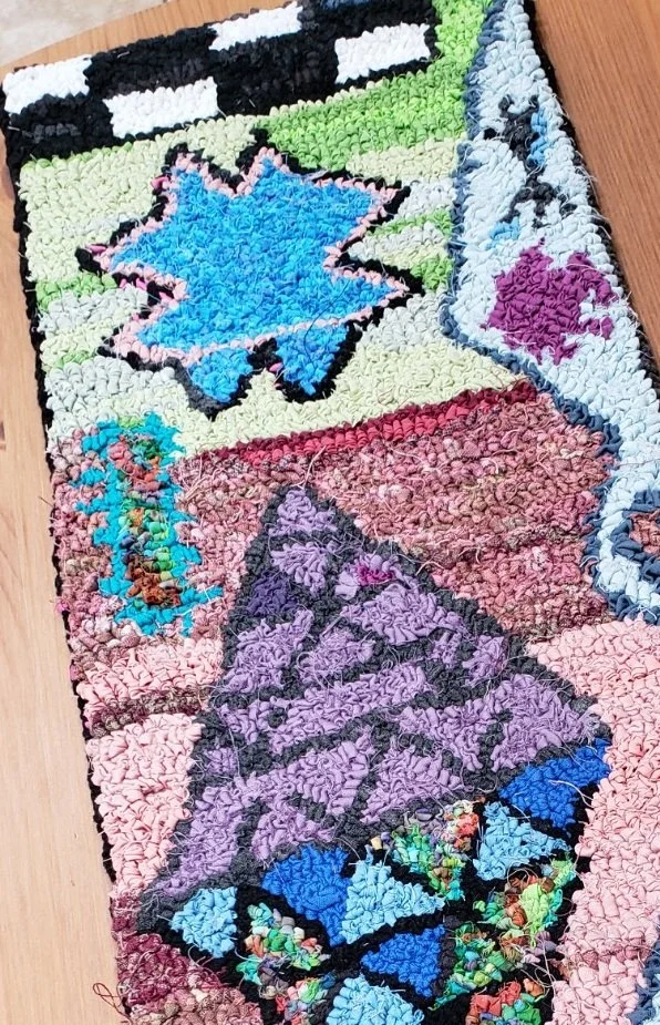Laura Salamy is the experienced, albeit “not-so-traditional” fiber artist behind High on Hooking (www.highonhooking.com). She serves as President of the Adobe Wool Arts Guild, New Mexico’s only rug hooking guild. Laura teaches locally and on Zoom. Her work can be seen online, in various books, in Rug Hooking Magazine, and in the Association of Traditional Hooking Artists Magazine.