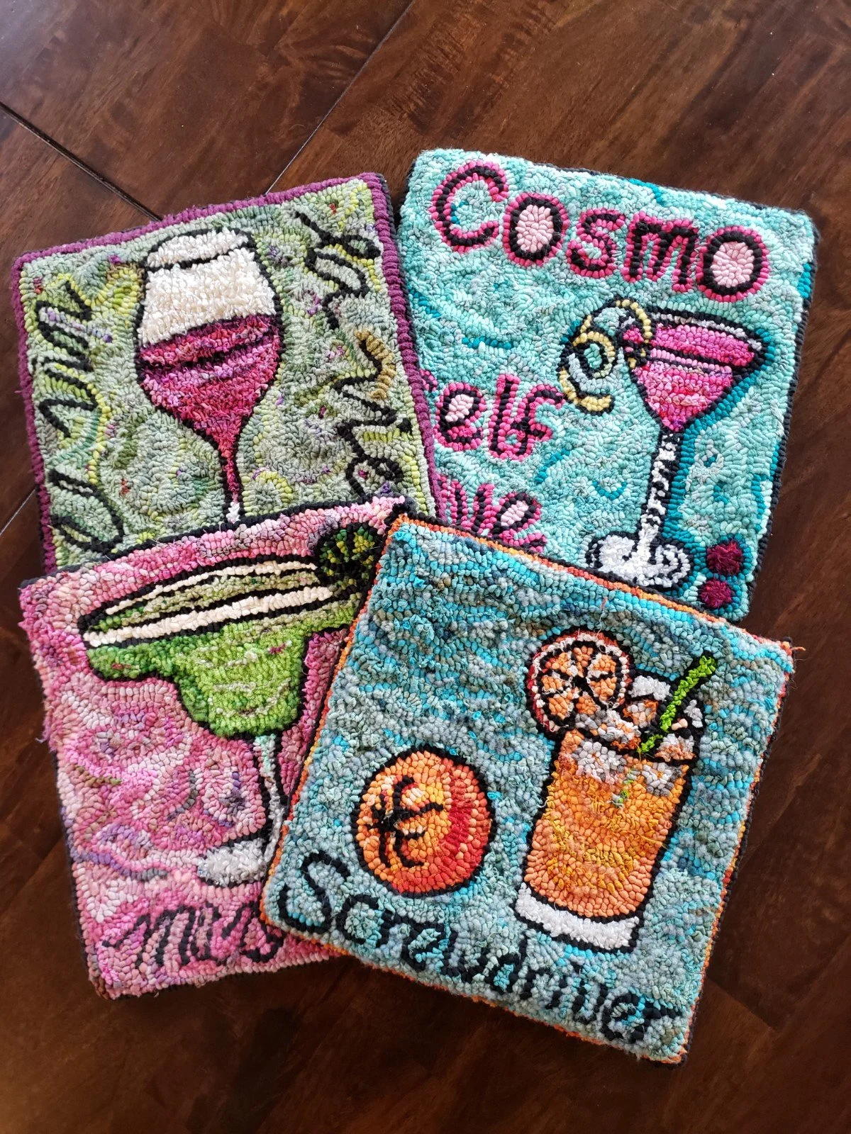 Begin hooking a “mug rug,” a small table mat, or wall hanging; and